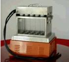 按经典凯氏定氮法为原理,广泛应用于粮食、食品、饲料、土壤、肥料、水、沉淀物、化学品乳制品、酿造、制糖、药物、煤炭、橡胶等物质的消解,具有测试精确、安全可靠、操作简便等特点。二十孔消解装置一次同时消化20个样品,采用自动温控,使用温度正确直观,温度可在室温~500℃任意调节。在不需要通风橱的条件下消化管内溢出的SO2等有害气体,全部通过毒气罩,经过抽气泵溶于水中排入下水道。减少了环境污染,提高了操作人员的安全性。