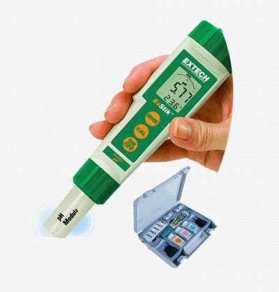 在同类仪器中创造性的采用了平面型pH电极。它可应用于任何介质中,包括溶液、微量溶液(最少可测0.3ml)、以及含水份的半固体和固体介质,例如皮肤、肉类、水果、布匹、纸张、奶酪等等。