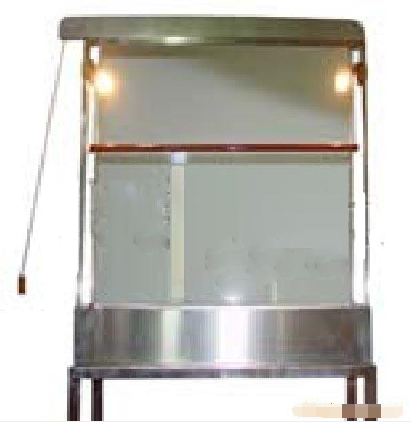 (落地式)锈钢架、不锈钢液槽,带射灯照明;1m×0.3m×1.75m